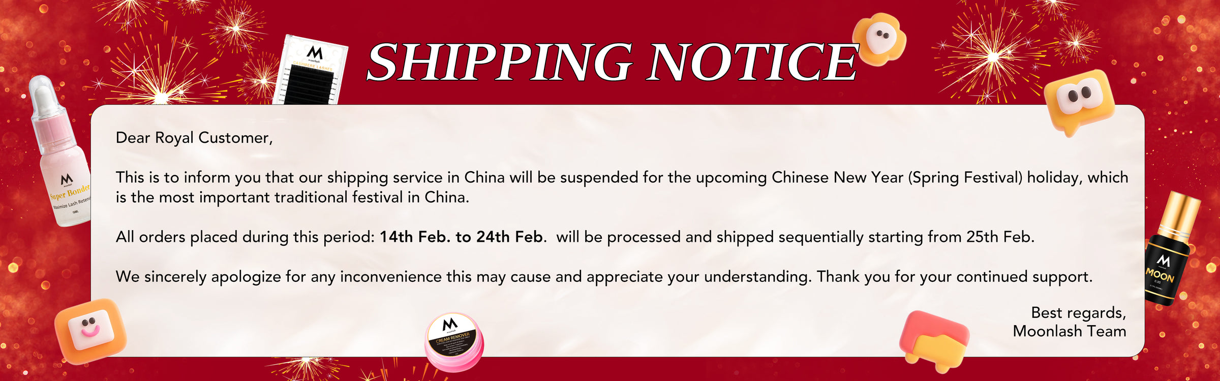 Shipping Notice: All order placed during 14th-24th Feb. will be shipped since 25th Feb.